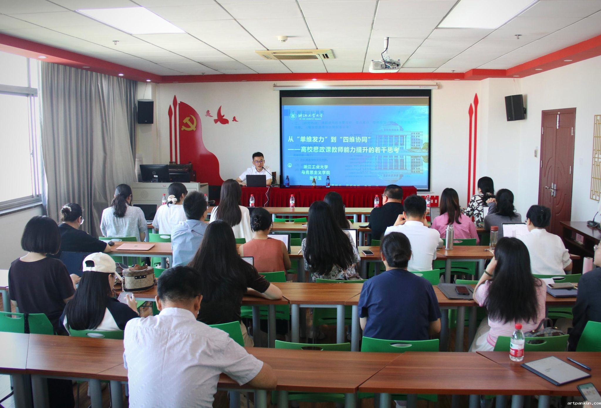 张子玉副教授长期从事马克思主义理论研究,聚焦于生态文明理论与实践研究,在学术与教学领域成果丰硕。他从自身从教经历为切入点,围绕思政课教师能力建设的核心命题,作“从‘单维发力’到‘四维协同’——高校思政课教师能力提升的若干思考”主题分享。从“科研筑基、教学提质、育人增效、社会服务”四个维度展开深度剖析,为学校教师队伍的建设与发展注入了新的思考。他提出,思政课教师需以理论研究筑牢能力根基,通过教学比赛等抓手提升课堂育人效能,以价值引领涵养育人情怀,同时借助社会服务拓展自身社会价值,实现“四维协同”的能力发展格局。张子玉副教授结合浙江工业大学思政教育实践案例,阐述了从“单维发力”向“多维协同”转型的具体路径,强调思政课教师要在科研与教学的融合中深化理论阐释力,在育人实践中强化价值引领力,在社会服务中彰显专业影响力。互动交流环节气氛热烈,青年教师们结合教学与科研中的困惑积极提问,张子玉副教授逐一给出细致且具针对性的建议,为解决教学实际难题提供了切实可行的方案。