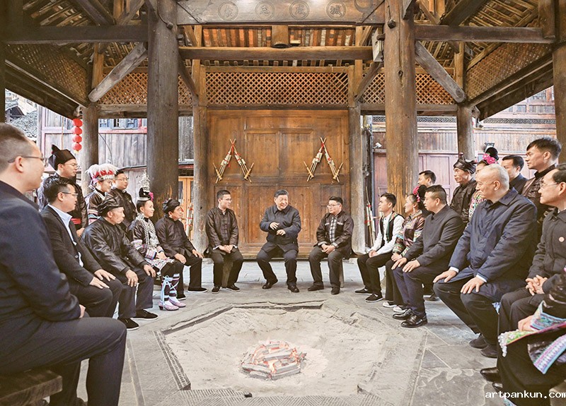 2025年3月17日至18日,中共中央总书记、国家主席、中央军委主席习近平在贵州考察。这是17日下午,习近平在黔东南州黎平县肇兴侗寨考察时,在信团鼓楼同村干部和村民代表围坐在火塘边,共话乡村全面振兴。